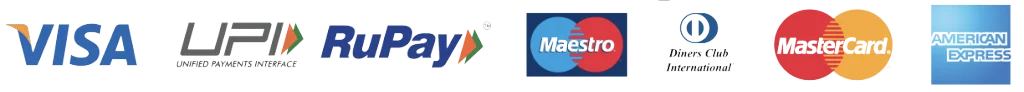 Credit/Debit Cards: Secure and widely accepted Visa, MasterCard, and Rupay card payments.
